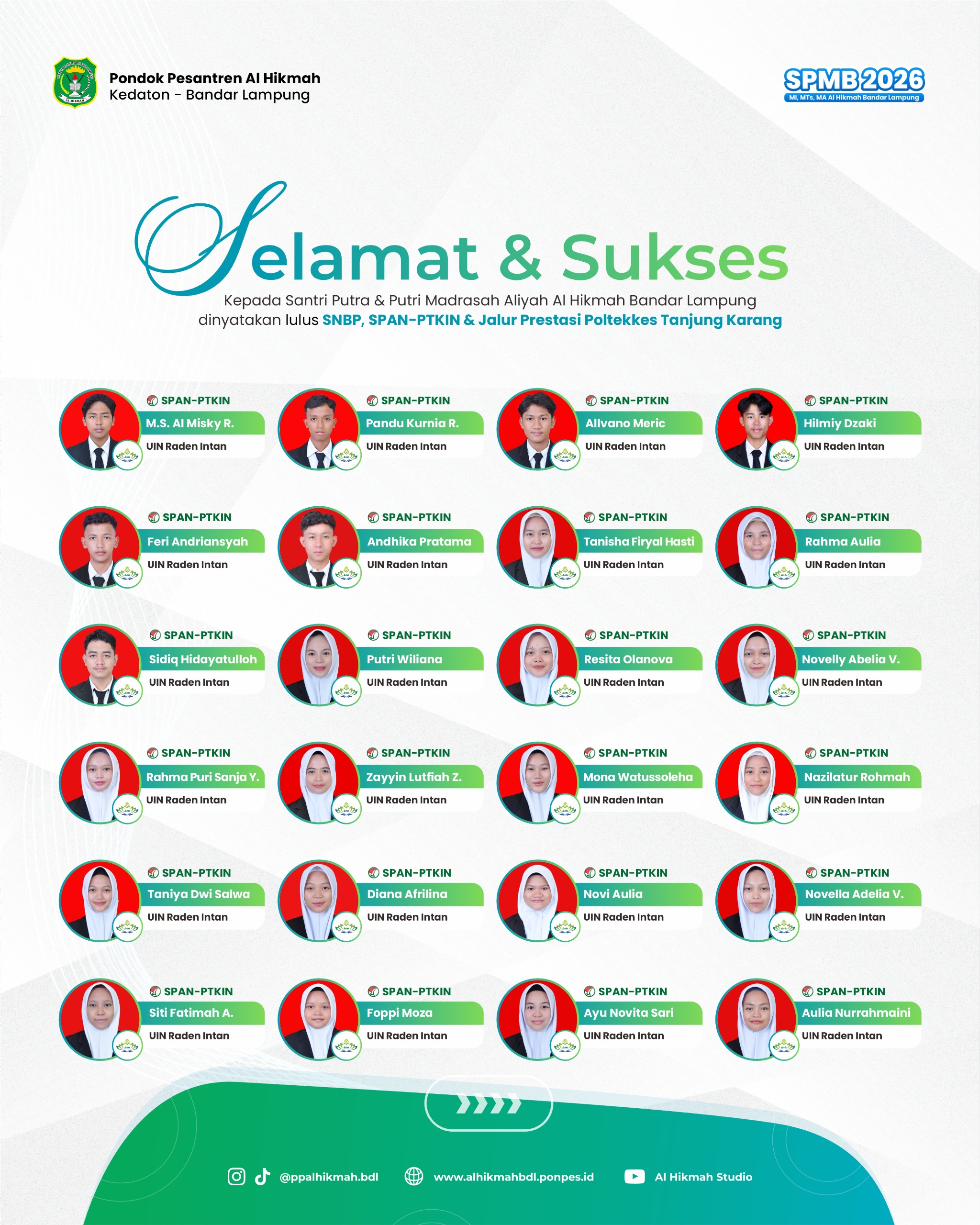 Santri MA Al Hikmah yang Diterima di Perguruan Tinggi 2025/2026
